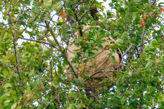 04.08.2025: Meldung von einem Nest der asiatischen Hornisse wurde heute aus Billerbeck-Overlau gemeldet. Die Asiatische Hornisse (Vespa
